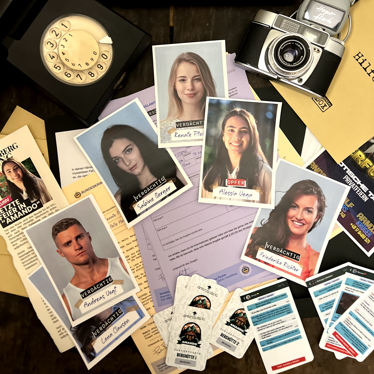 Öffne die Akte und durchforste jedes Detail: Lies alle Dokumente, sieh dir die Fotos an und analysiere die Nachrichten sowie Gesprächsprotokolle. Jeder Hinweis könnte der Schlüssel zur Wahrheit sein.