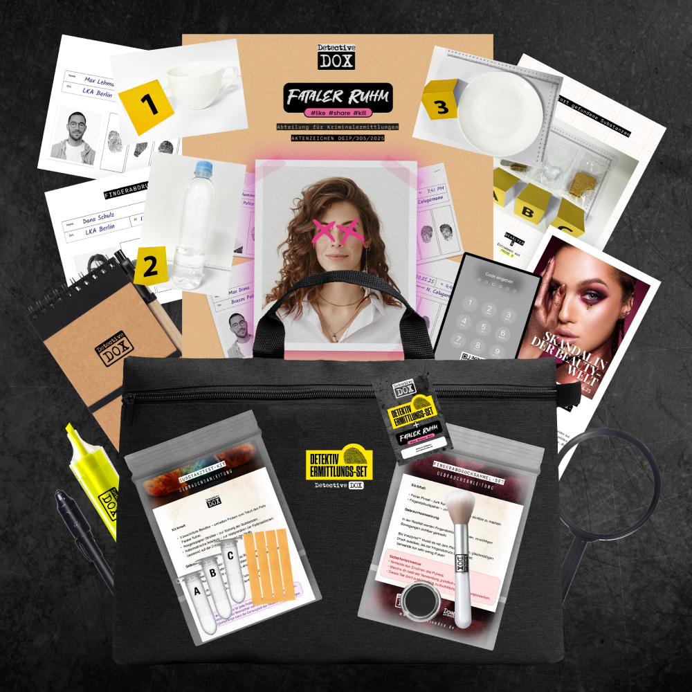 In einem scheinbar ruhigen Hotel im Herzen von Berlin erschüttert ein schockierender Fund die Online-Welt. Mia Schneider – eine bekannte und kontroverse Vloggerin – wurde leblos in Zimmer 507 aufgefunden, die Tür von innen verriegelt, daneben eine fast leere Wasserflasche. Der Fall wird von einem vollständigen Ermittlungs-Set begleitet, das dich in einen echten Detektiv verwandelt.